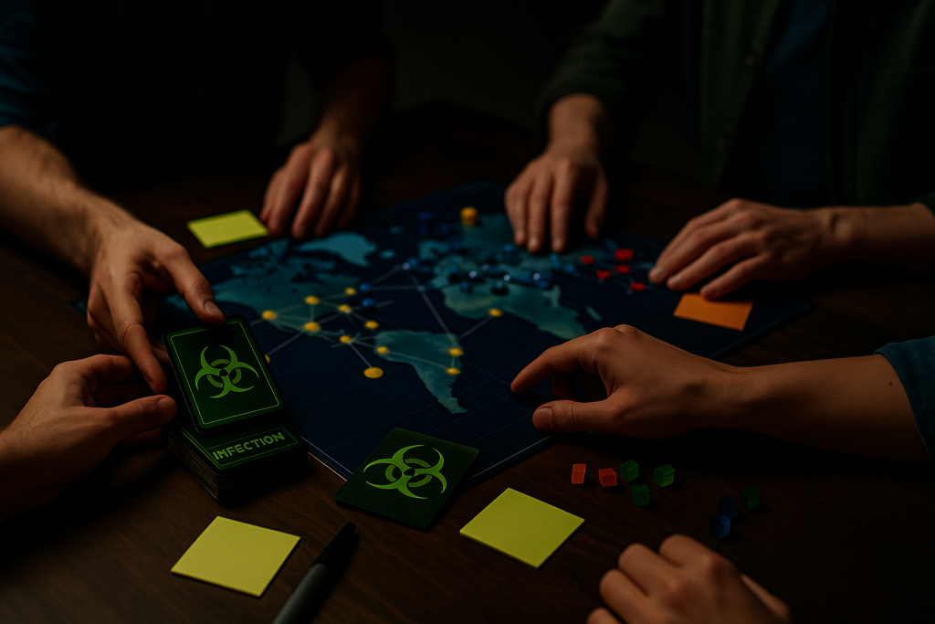 หัวใจของ Pandemic ไม่ใช่โชค แต่คือ ข้อมูล + ตำแหน่ง + จังหวะ อ่านชั้นบนหลัง Epidemic จด 6 เมือง จัดเวรเป็นวงใน/วงนอก ตั้งฮับกลางพายุ และกด Event ให้ถูกเวลา—คุณจะเปลี่ยนเกม “ตึงมือ” ให้กลายเป็นเกม “ตึงพอดี” ที่ทั้งโต๊ะอยากลุกขึ้นเฮพร้อมกัน